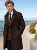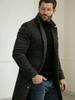 Это современное мужское пальто изготовлено из шерсти премиум-класса, предлагая идеальное сочетание стиля и комфорта.. Оно имеет стандартный крой, который изящно подчеркивает фигуру, обеспечивая при этом свободу движений.. Средняя толщина делает его идеальным выбором для разных сезонов, обеспечивая тепло без громоздкости.. Сшитое с классическим вырезом-стойкой, это пальто излучает утонченность и элегантность.. Его сплошной узор добавляет нотку вневременного очарования, делая его универсальным элементом как для официальных, так и для повседневных случаев.