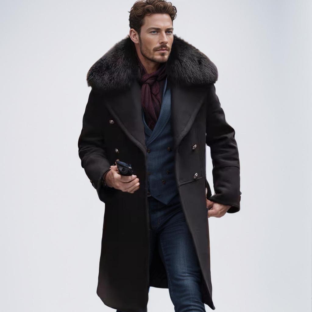 Дополните свой зимний гардероб этим элегантным мужским шерстяным пальто, созданным для приталенного силуэта.. Изготовленное из высококачественного полиэстера, это пальто обеспечивает средний уровень тепла, что делает его идеальным для прохладных дней.. Оно оснащено эффектным большим меховым воротником, изготовленным из смеси химических волокон, что добавляет нотку роскоши и тепла вашему образу.. Однотонный узор пальто и вырез-стойка придают ему вневременную, элегантную привлекательность, гарантируя, что вы будете выглядеть стильно в любой обстановке.