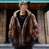 Мужская короткая коричневая шуба из искусственного меха на молнии с воротником-стойкой Теплая зимняя куртка Повседневная уличная одежда