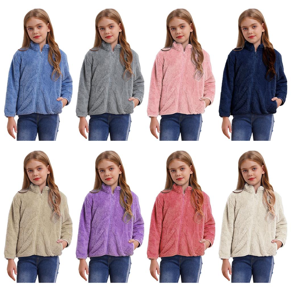 Унисекс Детская Повседневная Куртка с Длинным Рукавом, Воротником-стойкой, Мягким Плюшем, Застежкой-молнией, Карманами по Бокам, для Улицы — купить товар онлайн с бесплатной доставкой по всему миру!