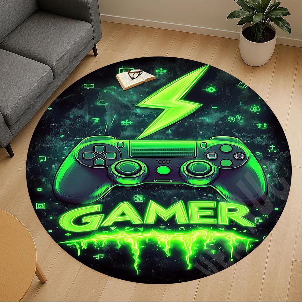 1PC Gamer Controller Neon Round Chair mat Area Rug - Non-Slip, Floor Mat for Office, Bedroom, home decor Christmas Gift c0528127