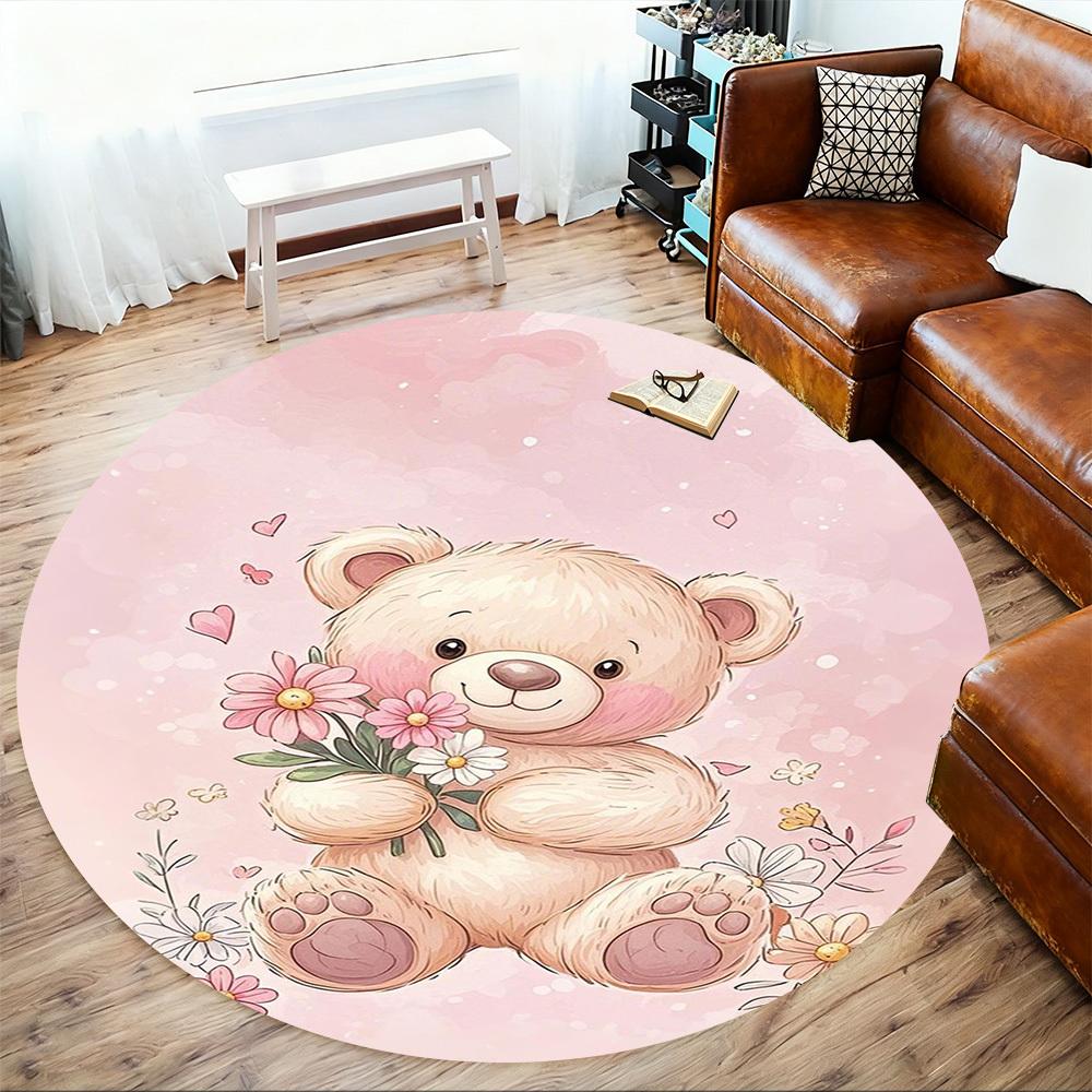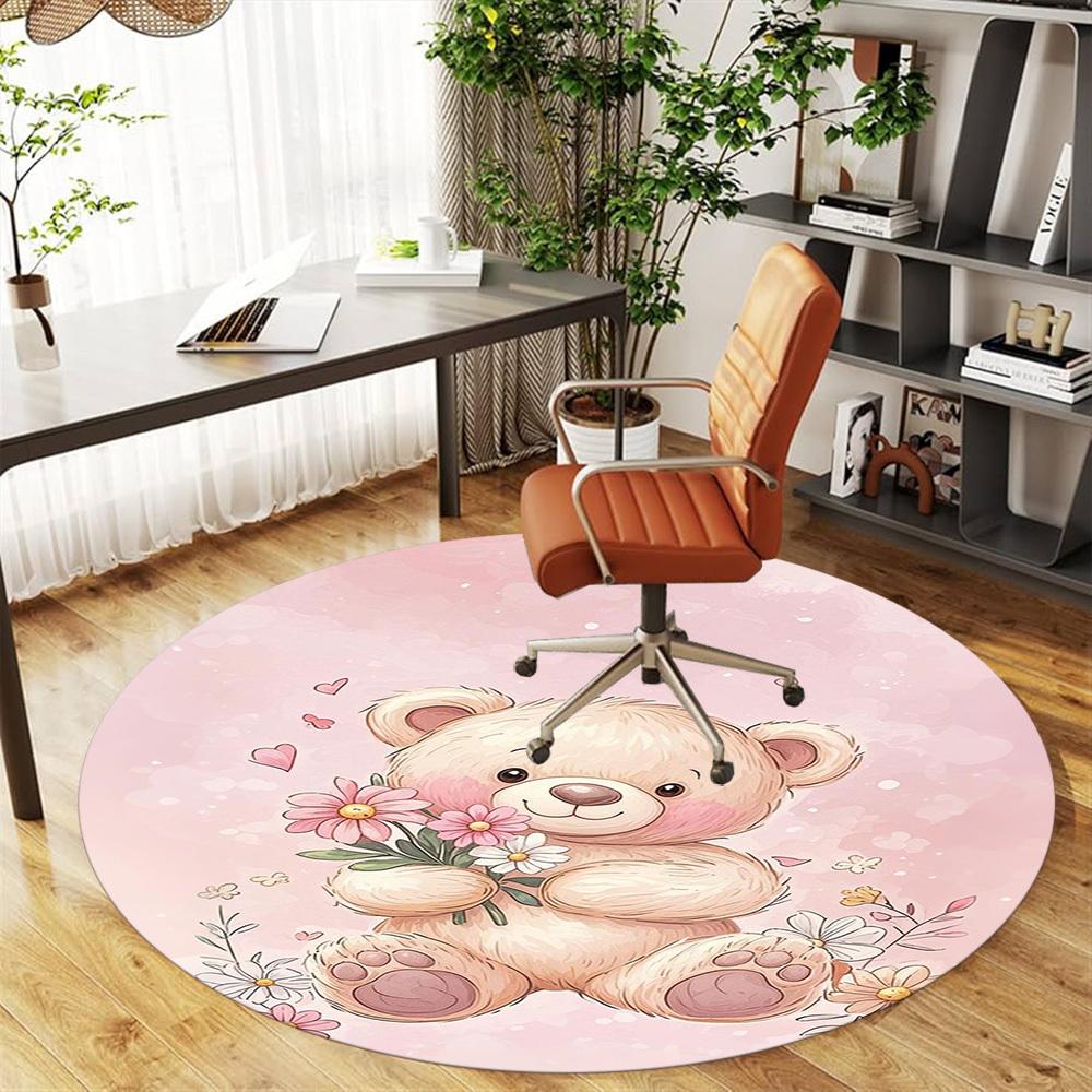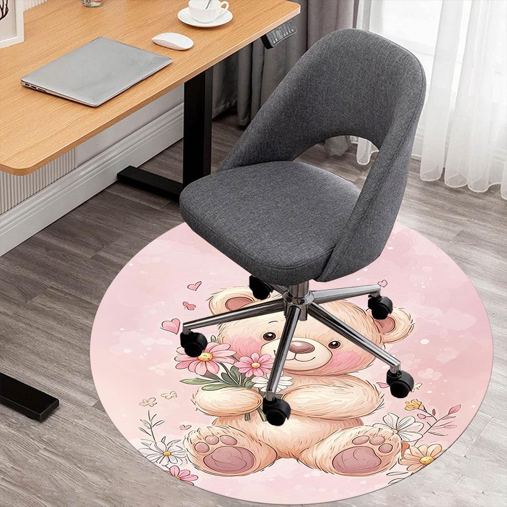 1PC Teddy bear Flowers Round Chair mat Area Rug - Non-Slip, Floor Mat for Office, Bedroom, home decor Christmas Gift c0528068