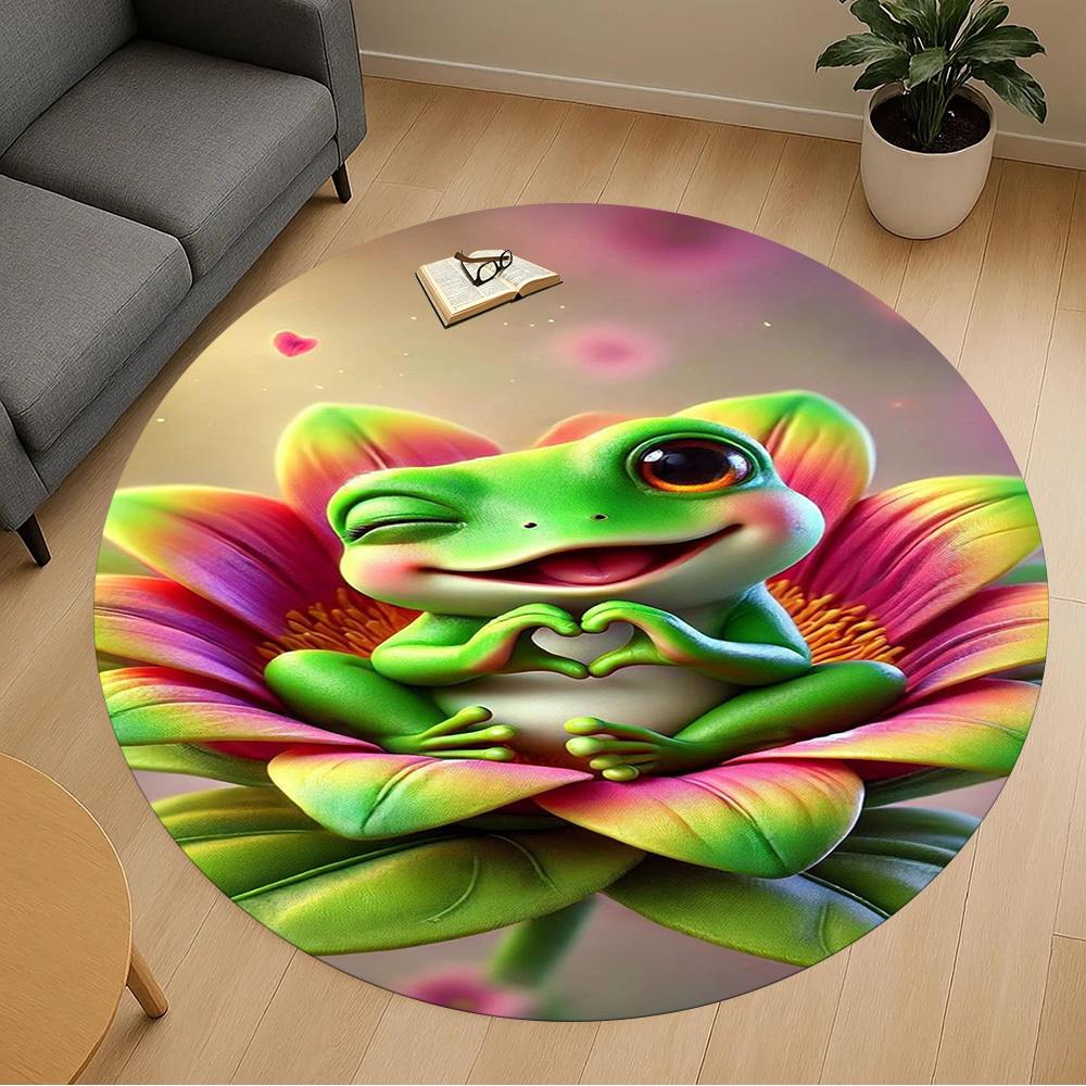 1 шт. Коврик для стула Круглый ковер с рисунком Лягушка Цветок Сердце - Нескользящий, Напольный коврик для офиса, спальни, домашнего декора Рождественский подарок c0528032