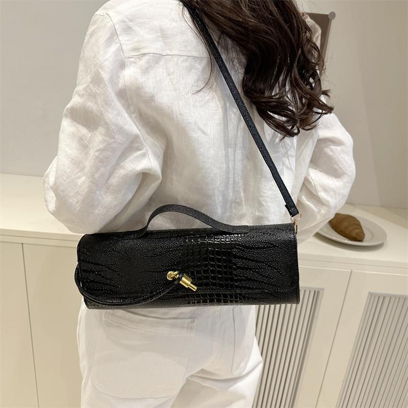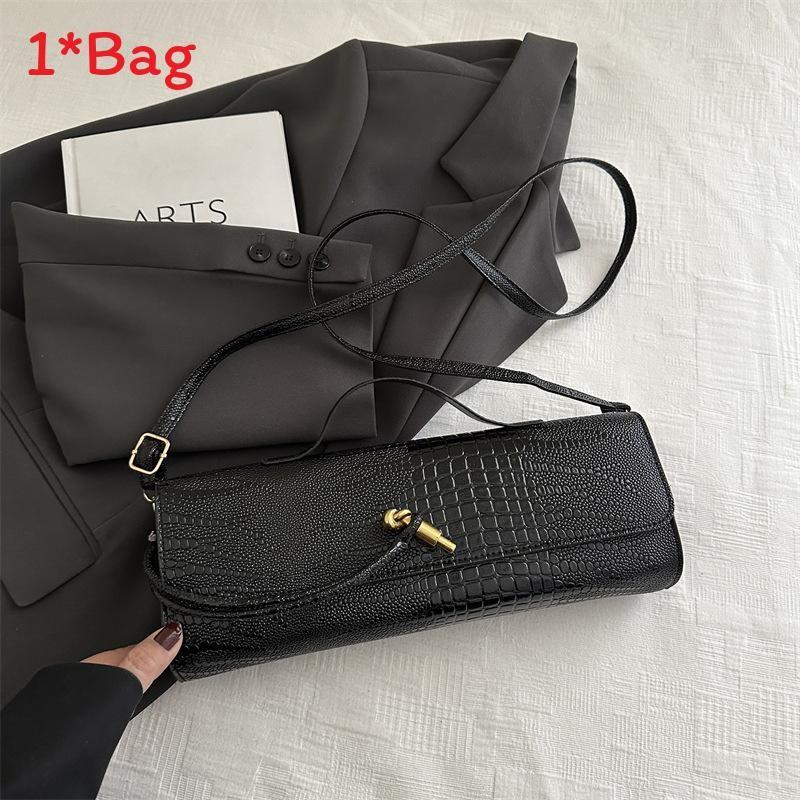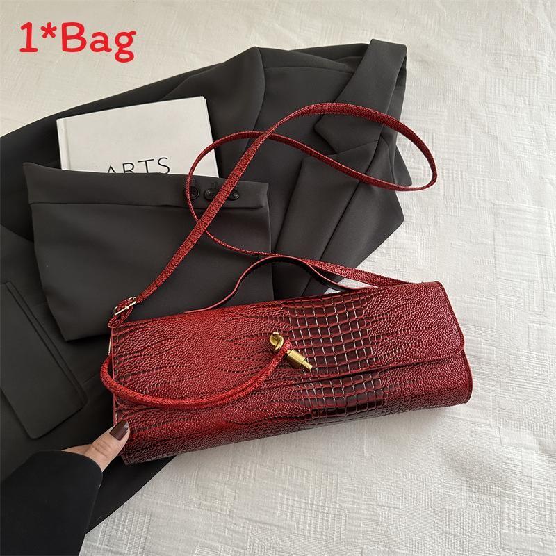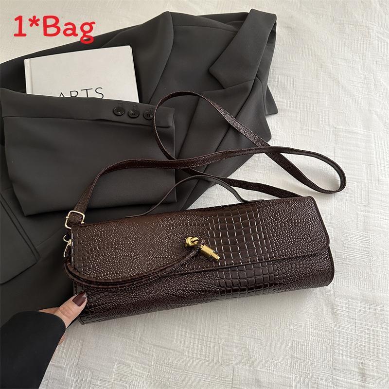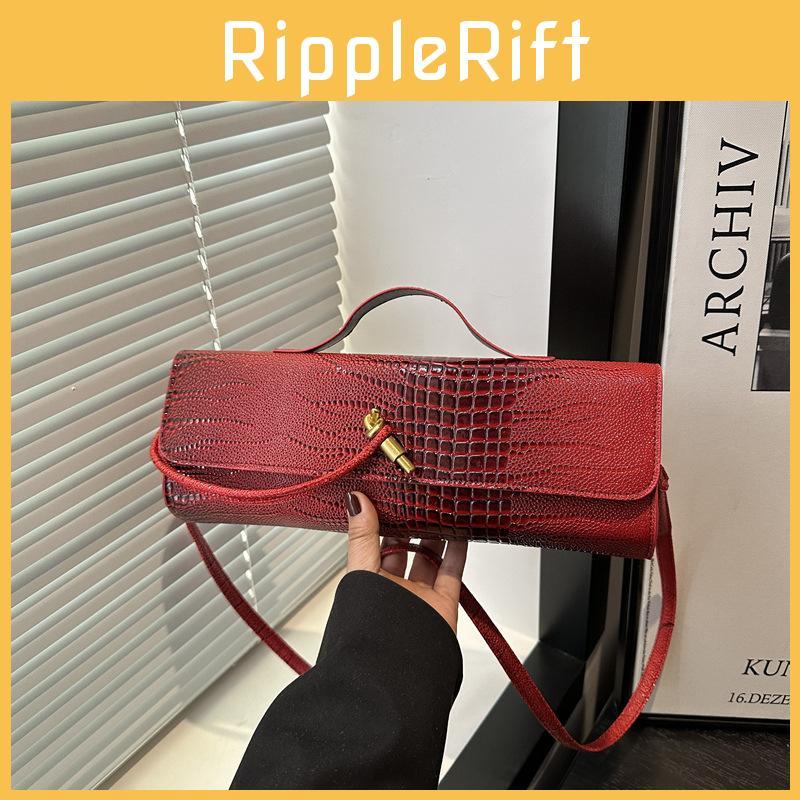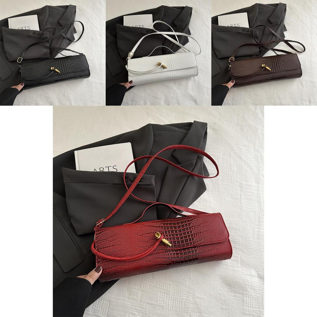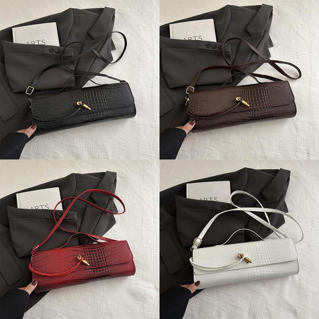 Эта стильная сумка через плечо сочетает в себе современную моду и практичную функциональность, что делает ее подходящей для повседневного использования.. Его средний размер, горизонтальная ориентация, размеры примерно 31,5 см в длину, 12 см в высоту и 7 см в ширину, изготовлен из прочного полиуретанового материала с привлекательным узором под крокодила. Сумка имеет клапан на застежке и внутренний накладной карман, обеспечивая организованное пространство без дополнительных отделений, а одинарный плечевой ремень позволяет легко носить ее.