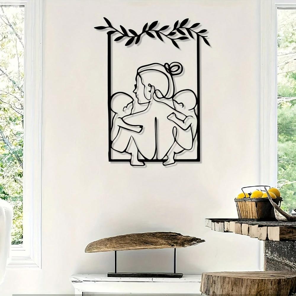 Vintage Metal Wall Art Rust Proof Wrought Iron Family Sculpture with Orange Garland Frame Living Room Decor Gift for Mother