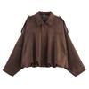 Женская замшевая куртка-бомбер Весна Новая мода Длинный рукав Молния Оверсайз Однотонное пальто-бомбер Шикарная леди 2026 Уличная одежда B88824