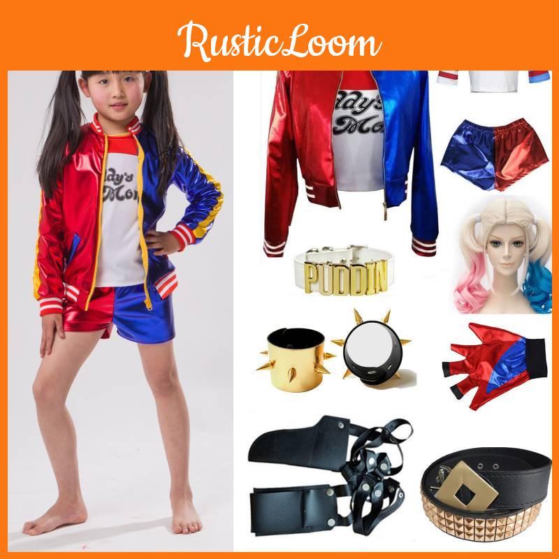 Этот косплей-костюм в стиле «Отряда самоубийц» включает полиэстеровую куртку, футболку, шорты, перчатки, парик, ремень, кобуру для пистолета, ошейник и напульсники, предназначен для взрослых и детей ростом от 100 до 175 см.. Изготовлен из прочного полиэстера и акрила, он поддерживает живые ролевые игры и косплей-мероприятия. Для ухода протирайте влажной тканью.