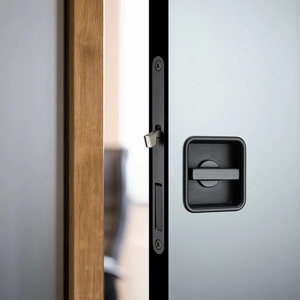 Square Sliding Door Lock Bedroom Pocket Door Lock Invisible Recessed Balcony Sliding Door Lock Anti-Theft Safety Wood Gate Lock