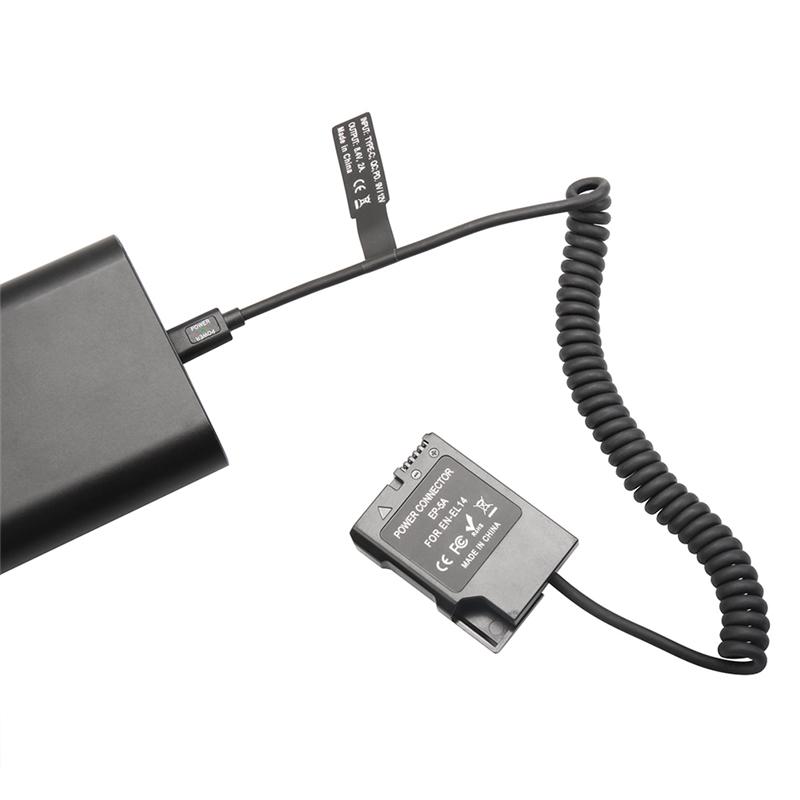 AA58 EL14 Dummy Coupler Battery Type-C Spring Cable for Nikon D3100 D3500 D5100 D5200 D5300 D5600 P7000 P7100 P7700 P7800