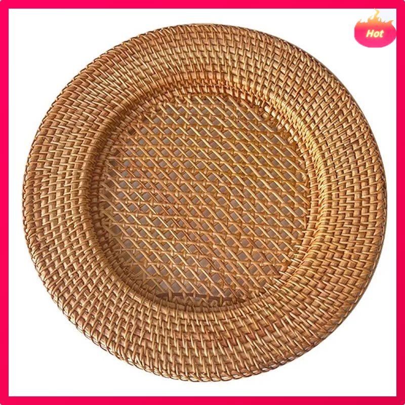 13-дюймовая ручная плетеная тарелка из ротанга, декоративная круглая подставка под тарелку, поднос для подачи хлеба и закусок, декор для стола, натуральная
