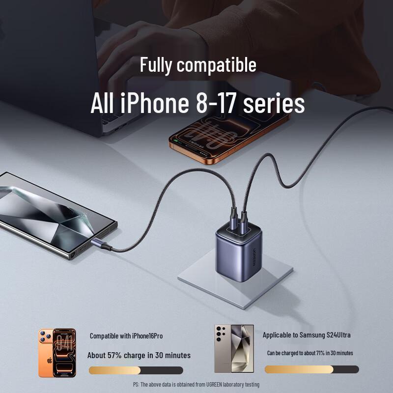 Ugreen Быстрое зарядное устройство GaN с двумя портами, 45 Вт