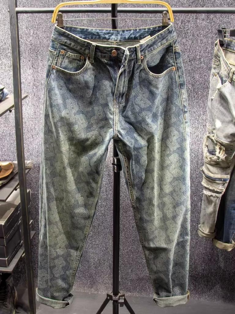 JYL Мужские Джинсы Уличный Стиль Молния Укороченные Прямые Широкие Штанины Деним