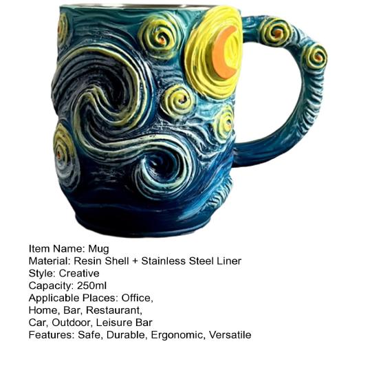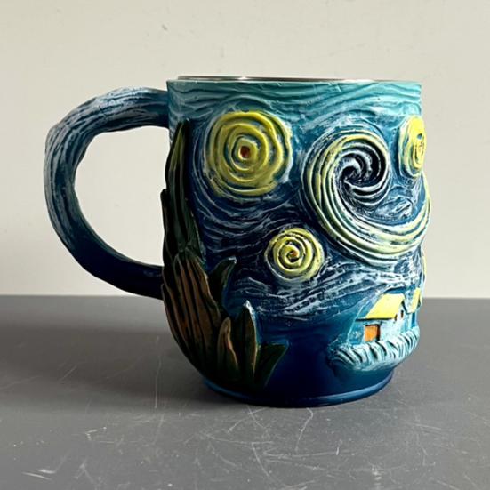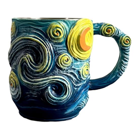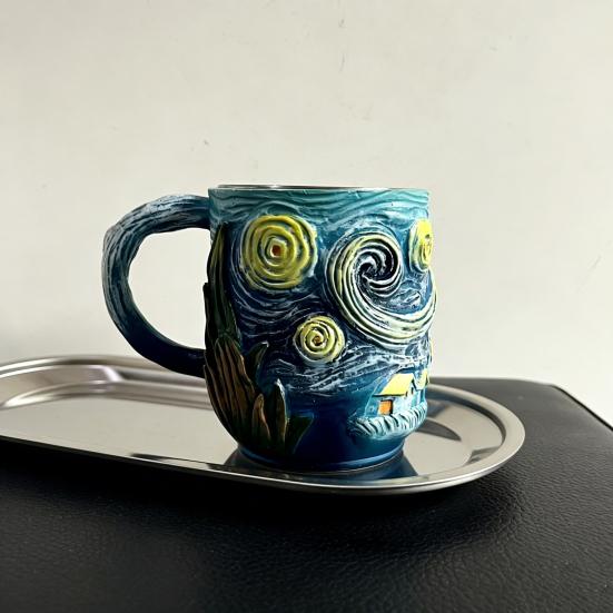 Кружка с рельефным 3D-артом «Звездная ночь», чашка с дизайном «Синее небо и вихри», со спиралевидной ручкой, большой вместимости, уникальная кофейная чашка, декоративный подарок для любителей искусства