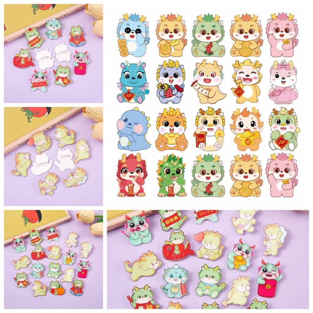 Flying Dragon Cartoon Dragon Brooch Lapel Pin Year Badge Pins Laser Acrylic Brooch School Bag