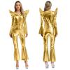 Metallic Shiny Bell Bottom Jumpsuit for Women S-3XL: Disco Style Romper with High Waist & Long Sleeves, Halloween Costume