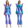 Metallic Shiny Bell Bottom Jumpsuit for Women S-3XL: Disco Style Romper with High Waist & Long Sleeves, Halloween Costume — купить товар онлайн с бесплатной доставкой по всему миру!