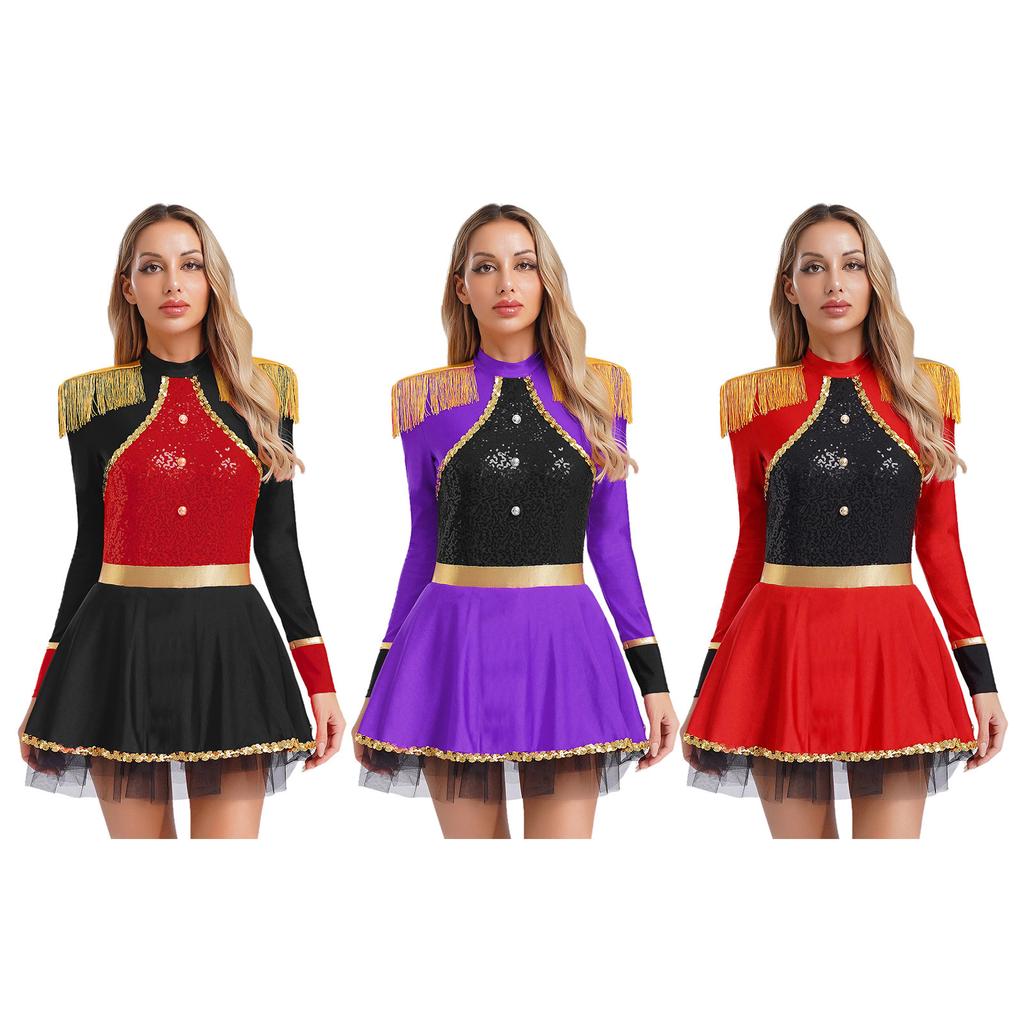 Женский боди для сценических выступлений S-XXL: Сексуальное платье циркового конферансье с длинными рукавами, бахромой и блестящими пайетками по всей поверхности