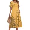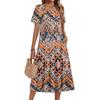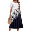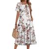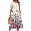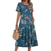 Женское повседневное и модное платье с цветочным принтом, короткими рукавами и круглым вырезом.