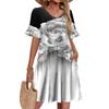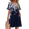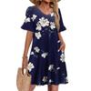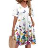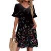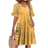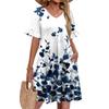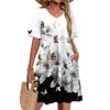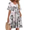 Женское А-силуэтное летнее платье с коротким рукавом, V-образным вырезом и принтом, с карманами
