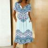 Женское модное ретро платье с принтом, круглым вырезом, короткими рукавами, застежкой на пуговицы у горловины, средней длины, повседневное — купить товар онлайн с бесплатной доставкой по всему миру!