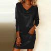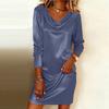 Стильное, элегантное и изысканное платье миди с длинными рукавами и вырезом на шее для женщин — купить товар онлайн с бесплатной доставкой по всему миру!