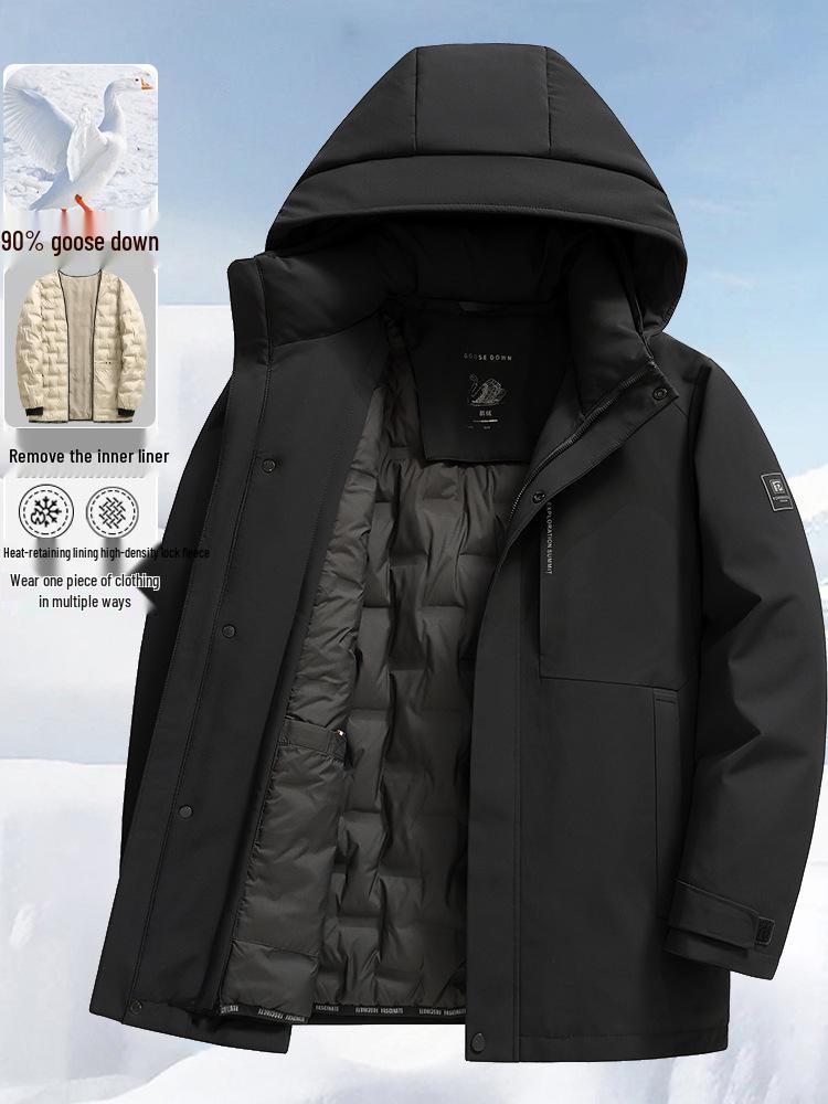 Мужская зимняя куртка с отстегивающейся подкладкой, 90% белый гусиный пух - Business Casual, Утепленная, Стиль для среднего возраста — купить товар онлайн с бесплатной доставкой по всему миру!