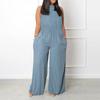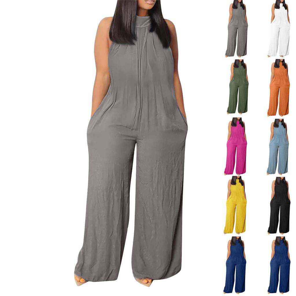 Женский комбинезон большого размера Летний пляжный без рукавов Цветной Повседневный Модный Широкие штанины Комбинезон