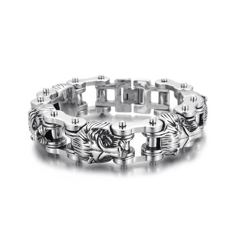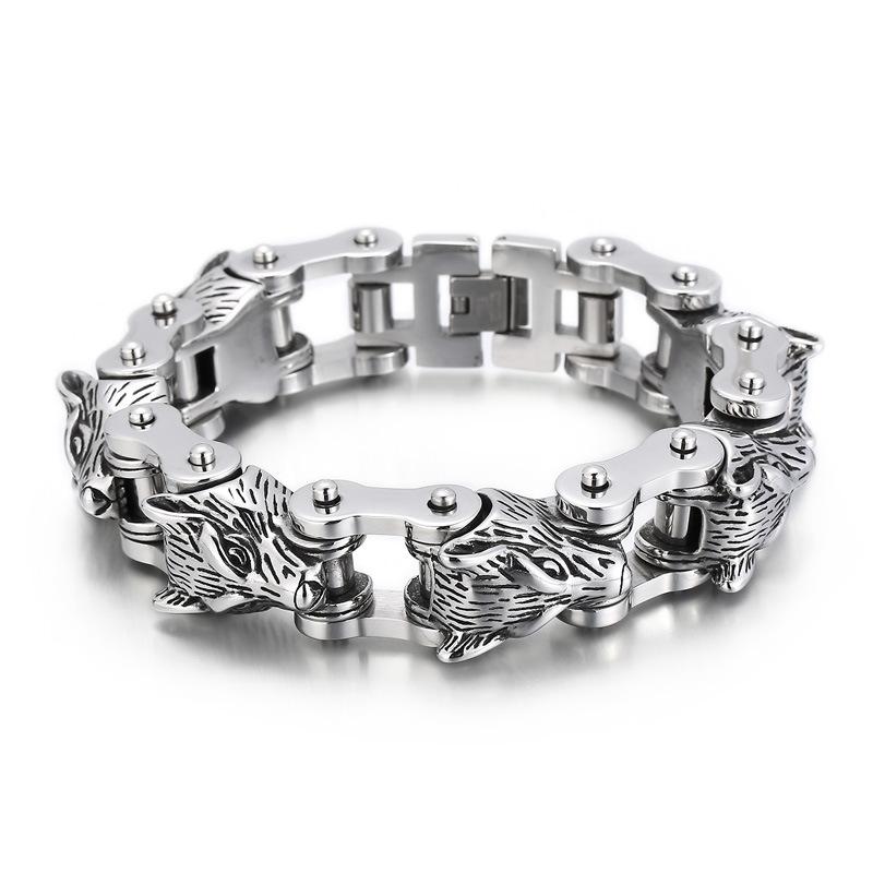 Тяжелый Панк Ретро Викинги Волк Голова Цепь Браслет Хип-хоп Мужчины Женщины Нержавеющая Сталь Лев Велосипед Велосипед Байкер Браслет Украшения