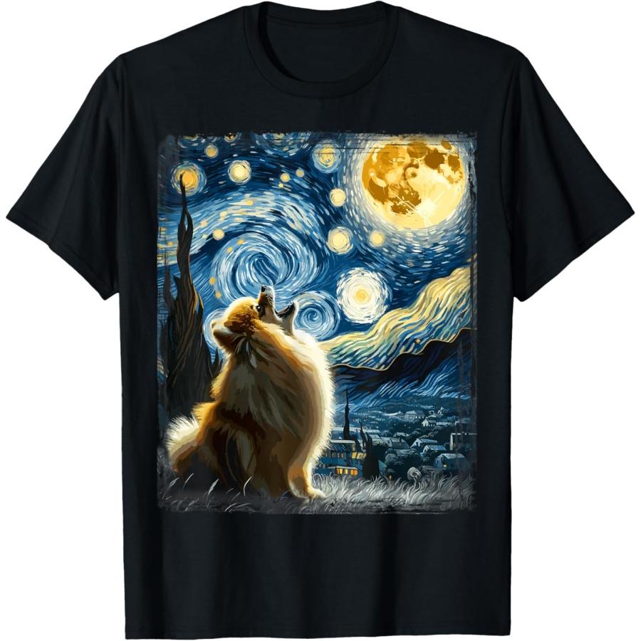 Pomeranian Dog Canine Art Van Gogh Starry Night Pomeranian T-Shirt for Men Women Kids