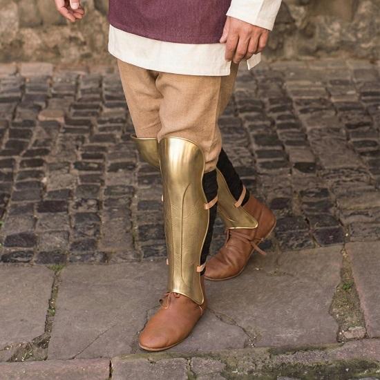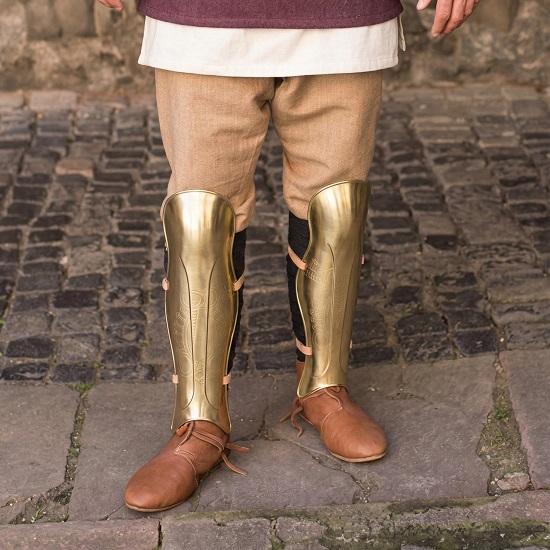 Изготовленные с вниманием к деталям, эти средневековые поножи имеют форму, чтобы удобно облегать голень, обеспечивая аутентичный вид брони без ущерба для свободы движений.. Гладкая, зеркальная полировка латуни придает им премиальный вид, идеально подходящий для реконструкций, косплей-мероприятий и кинематографического использования.. Независимо от того, изображаете ли вы бесстрашного спартанского воина, римского солдата или средневекового рыцаря, эти поножи мгновенно улучшат ваш костюм.