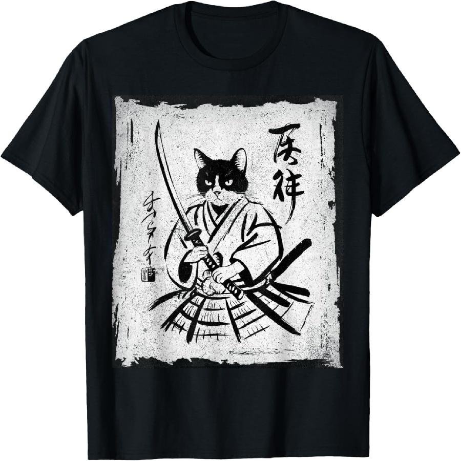 Retro Samurai Cat Ukiyo-e Warrior Art Graphic Cat Art T-Shirt — купить товар онлайн с бесплатной доставкой по всему миру!