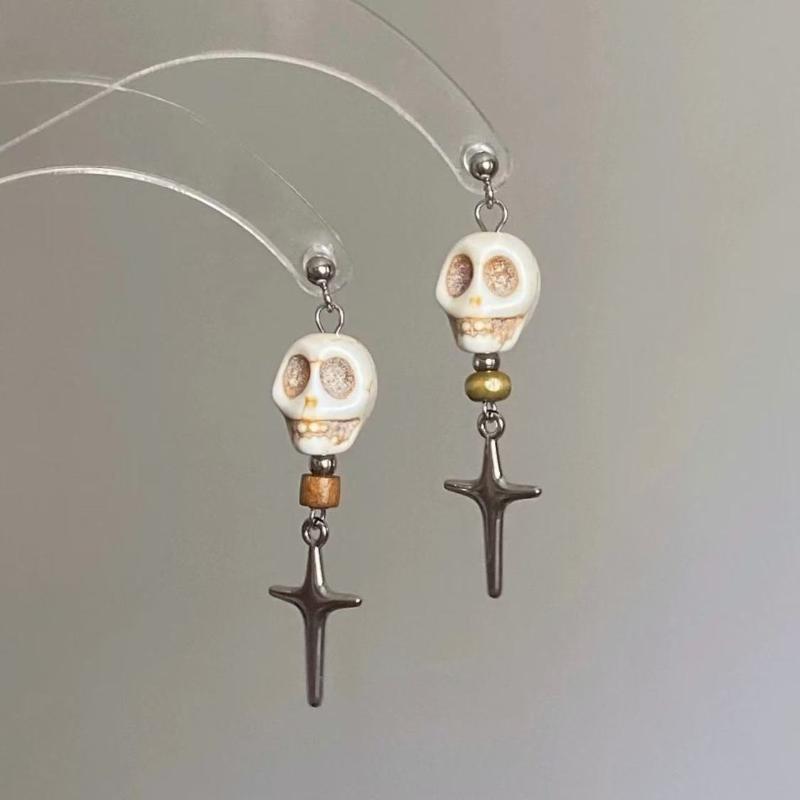 1Pair Punk Hip Hop Silver Color Rivet Drop Earrings For Women Men Gothic Metal Geometric Cone Pendant Earrings Y2K Party Jewelry