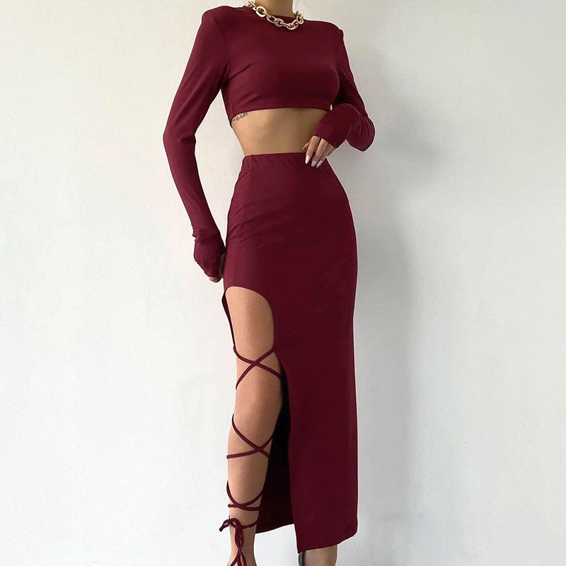 Женский повседневный топ с длинным рукавом и круглым вырезом, узкий, с ремешком, комплект с юбкой-полукарандаш — купить товар онлайн с бесплатной доставкой по всему миру!