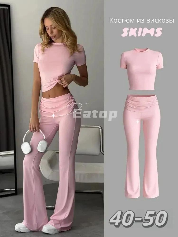 Повседневный Цветной Узкий Короткий Рукав Комплект Брюк Спецификация: Этот стильный вязаный комплект — обязательная вещь в этом ! Он сочетает спортивный стиль с комфортом, что делает его незаменимой вещью в гардеробе.. В комплект входят облегающая футболка и расклешенные леггинсы с зауженными манжетами, создающие flattering, женственный образ, подходящий для различных случаев.. Почему стоит выбрать этот набор? - Стильный дизайн: Вдохновленный и коллекцией, этот комплект искусно сочетает облегающий топ с расклешенными леггинсами с асимметричным подолом, который подчеркивает , и бедра, выделяя изящную фигуру женщины.. - Универсальный и практичный: Идеально подходит для отдыха дома, тренировок, йоги, пилатеса, прогулок, танцев и даже для фотосессий в стиле Pinterest.. Этот комплект идеально подходит для лета, но его также можно носить весной и летом, и он может использоваться как пижама или одежда для дома.. Подходит для: - Девушки, которые любят стильную спортивную одежду - Расклешенные брюки разработаны специально для миниатюрных женщин, визуально удлиняя ноги. Подходит для женщин ростом ниже 170, высоких. Подробности: - Использует: Повседневная домашняя одежда, спортивная одежда и стильные комплекты из двух предметов, подходящие для повседневной носки.
