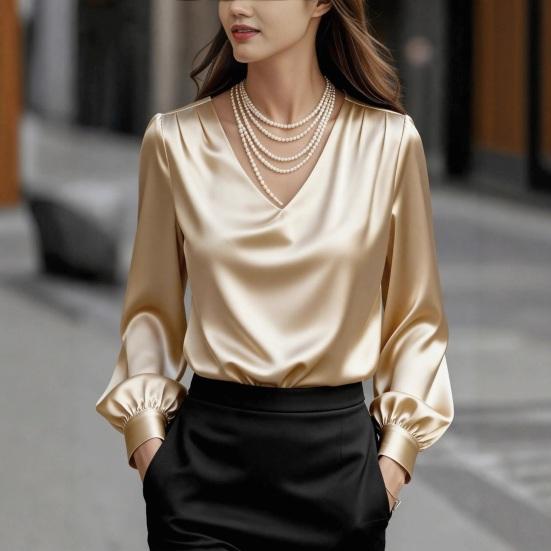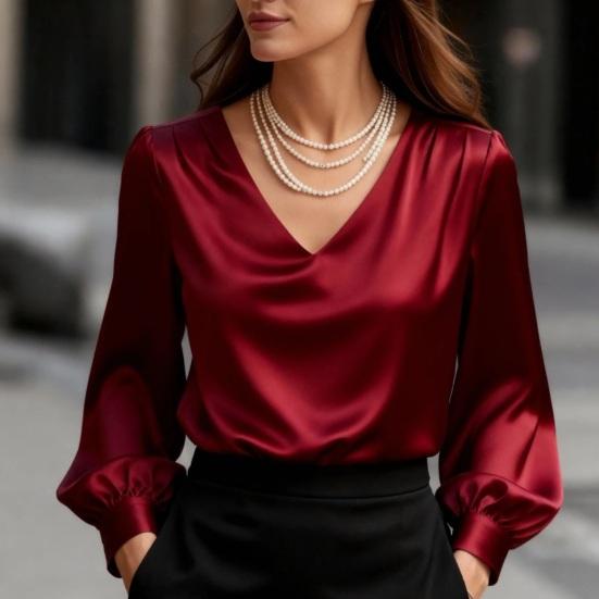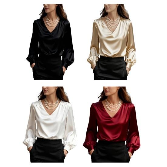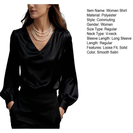 Дизайн включает в себя V-образный вырез, который выгодно подчеркивает фигуру, и стильные рукава-фонарики, которые естественно драпируются или могут быть легко подвернуты для универсальности.. Эта рубашка, идеально сочетающаяся с повседневными брюками, костюмными брюками или джинсами, подходит для различных случаев, таких как работа, повседневные прогулки, вечеринки, свидания, семейные собрания и путешествия.. Подчеркните свой стиль без усилий с этой универсальной и шикарной женской рубашкой с длинным рукавом.