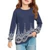 Блузка для девочек с длинным рукавом - Туника с мягкой талией и круглым вырезом