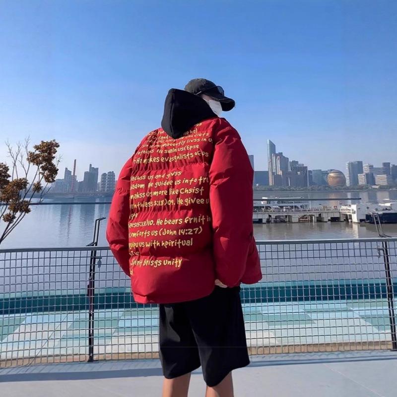 Мужская и женская красная хлопковая зимняя куртка Год Крысы - Утепленное, теплое пуховое пальто для защиты от холода