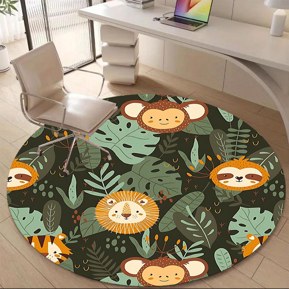 1pc Tropical Monkey Office Round Area Rug, Under Office Chairs Bedroom Living Room Home Decor, Room Deco