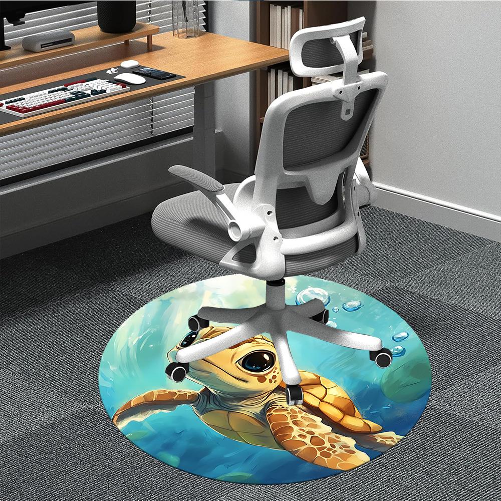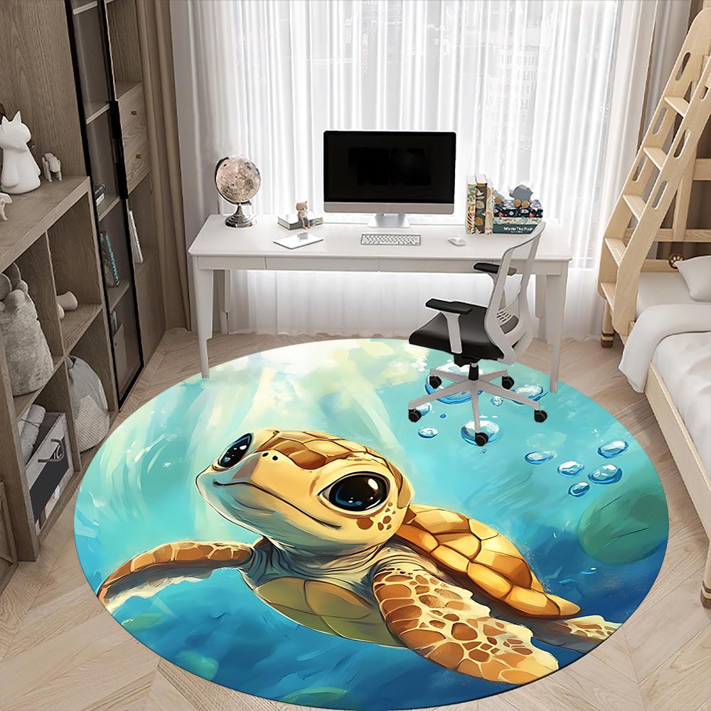 1PC Sea Turtle Aquatic Office Round Area Rug, Mat Suitable For Office, Under Office Chairs Bedroom Living Room Home Decor, Room Deco