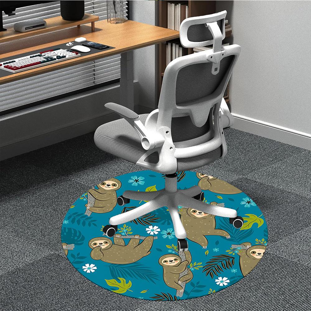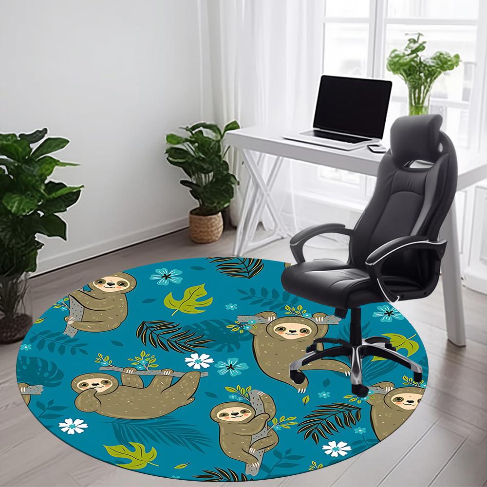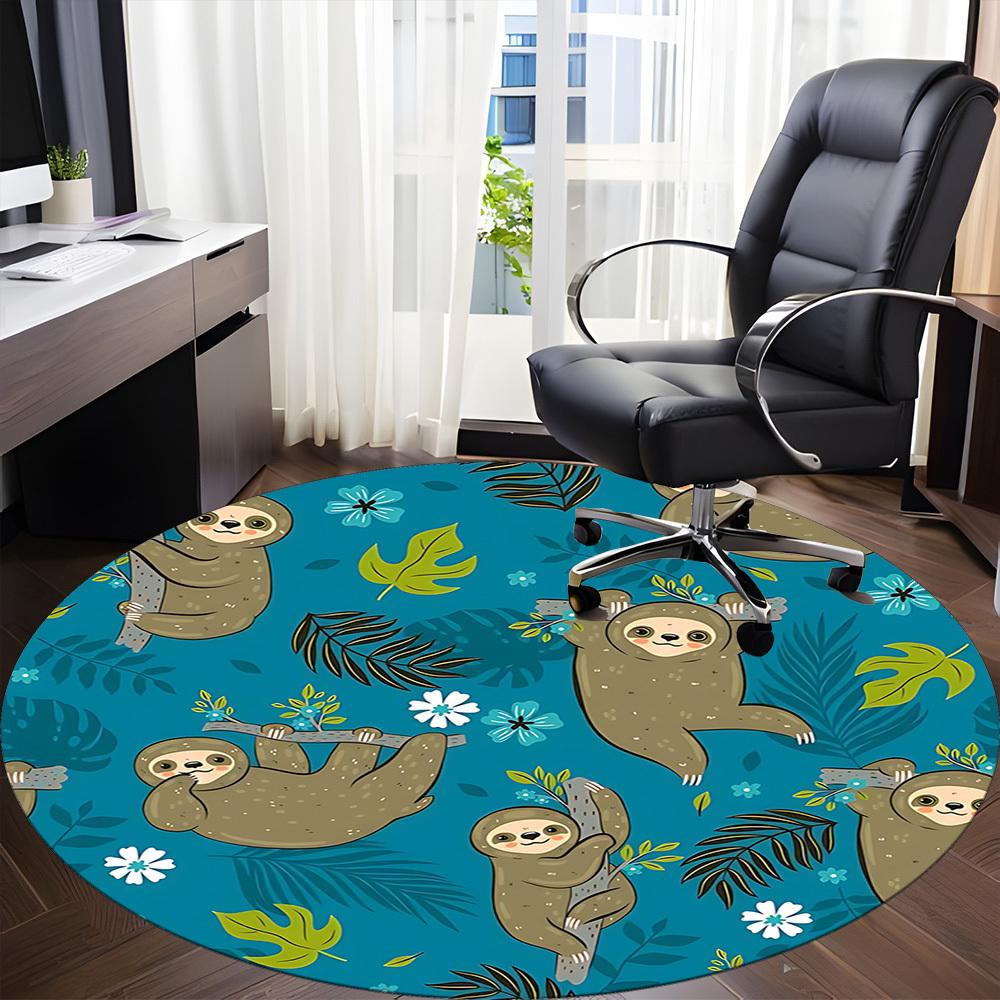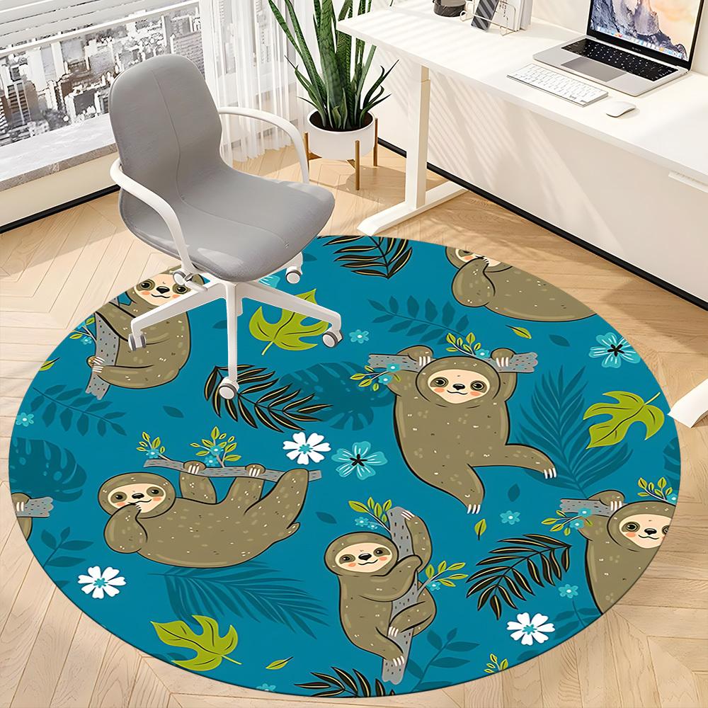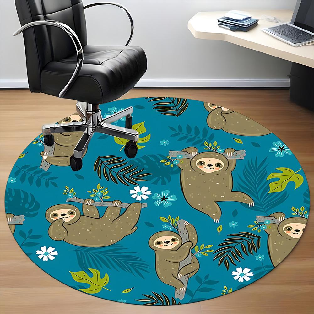1PC Sloth Floral Office Round Area Rug, Mat Suitable For Office, Under Office Chairs Bedroom Living Room Home Decor, Room Deco
