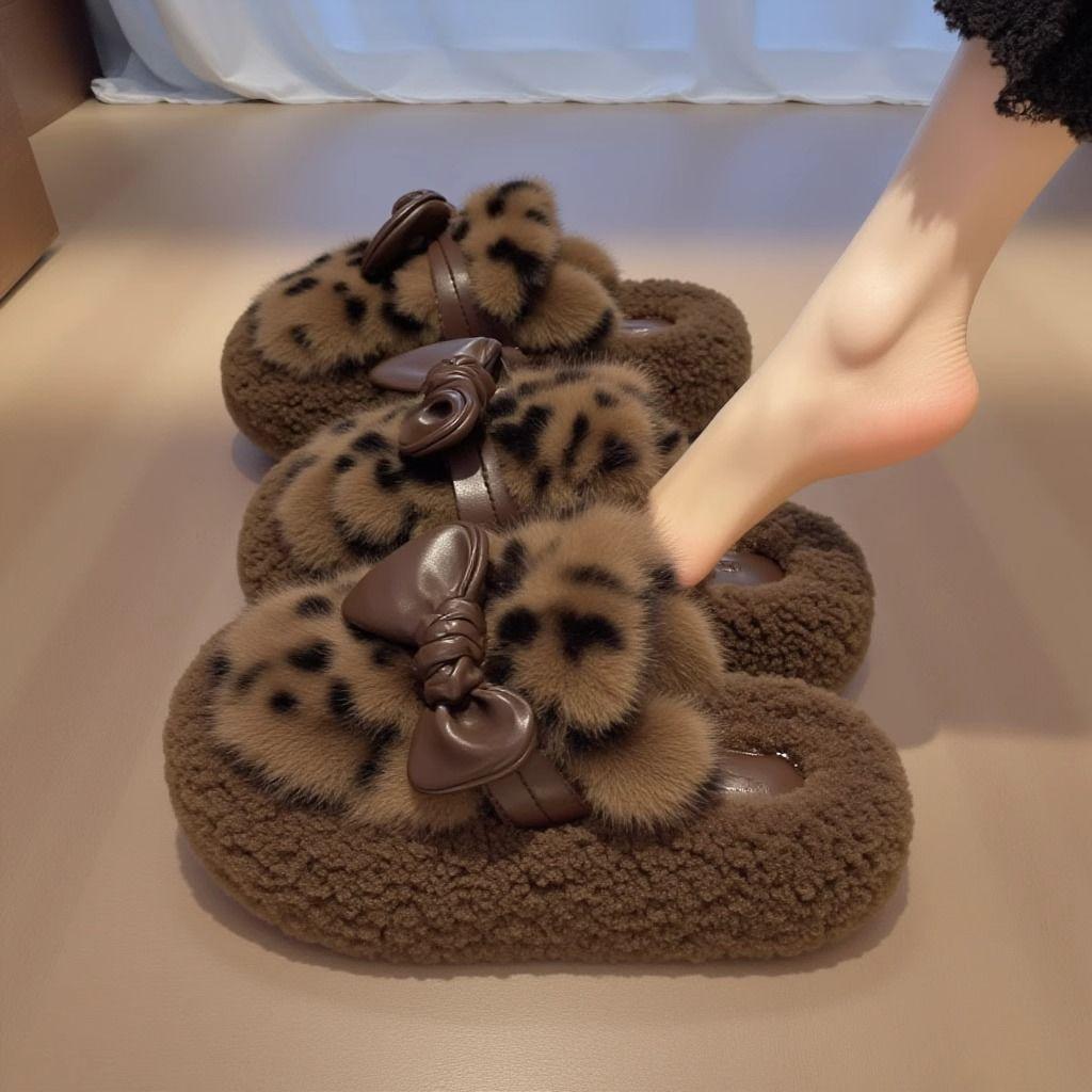 Скинни бант корейская версия полутапочки пушистые толстая подошва хлопковые тапочки увеличивают рост и сохраняют тепло чувство дизайна, одна педаль мешок для головы