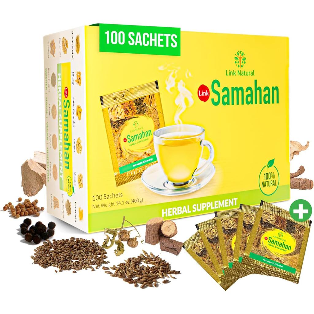 Link Натуральный Травяной Чай Самахан, 100 Пакетиков по 4 г Каждый, Поддержка Иммунитета и Здоровья, Цейлонский Пряный Настой Для Облегчения Симптомов Простуды