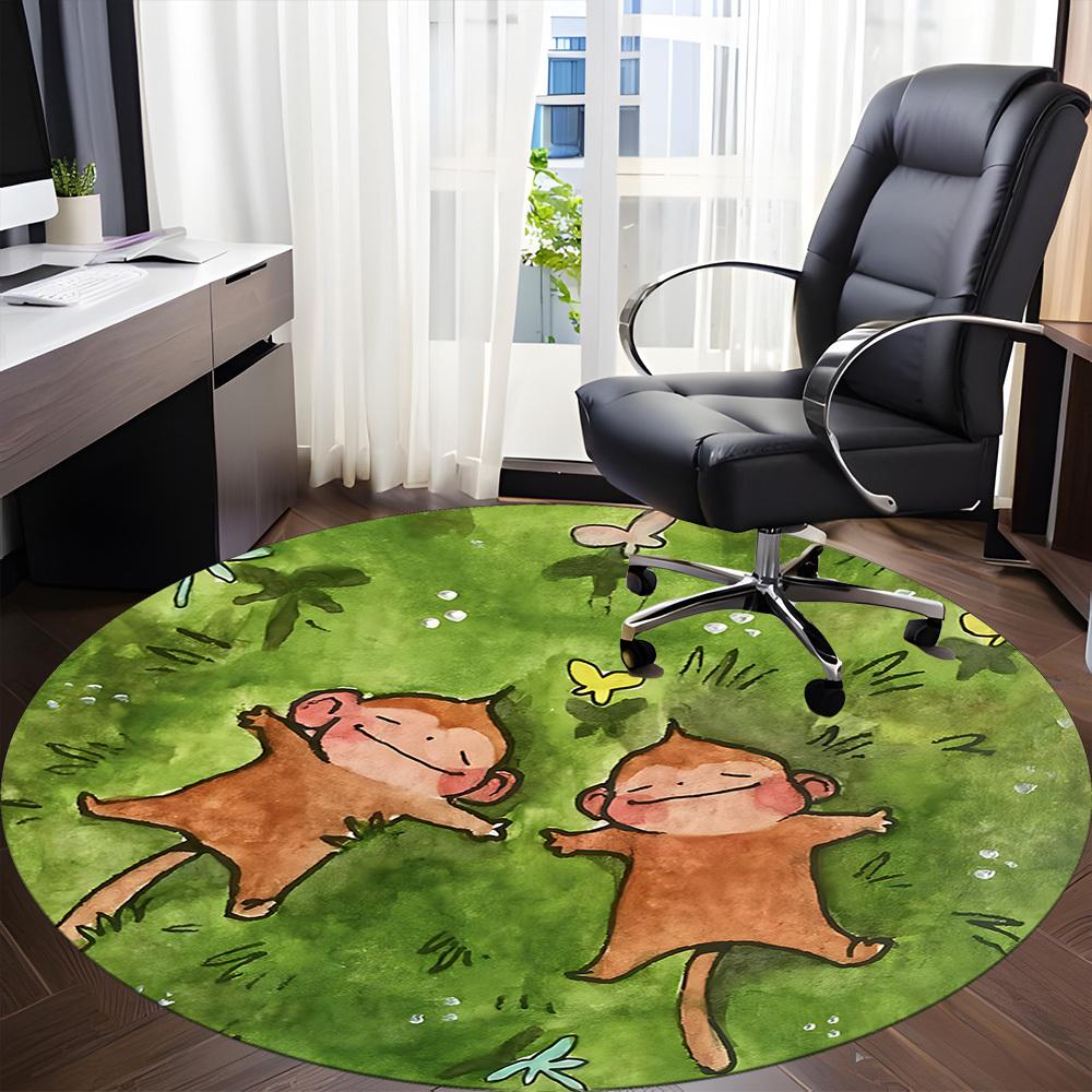 1PC Monkey Grass Office Round Area Rug, Mat Suitable ForOffice, Under Office Chairs Bedroom Living Room Home Decor, Room Deco
