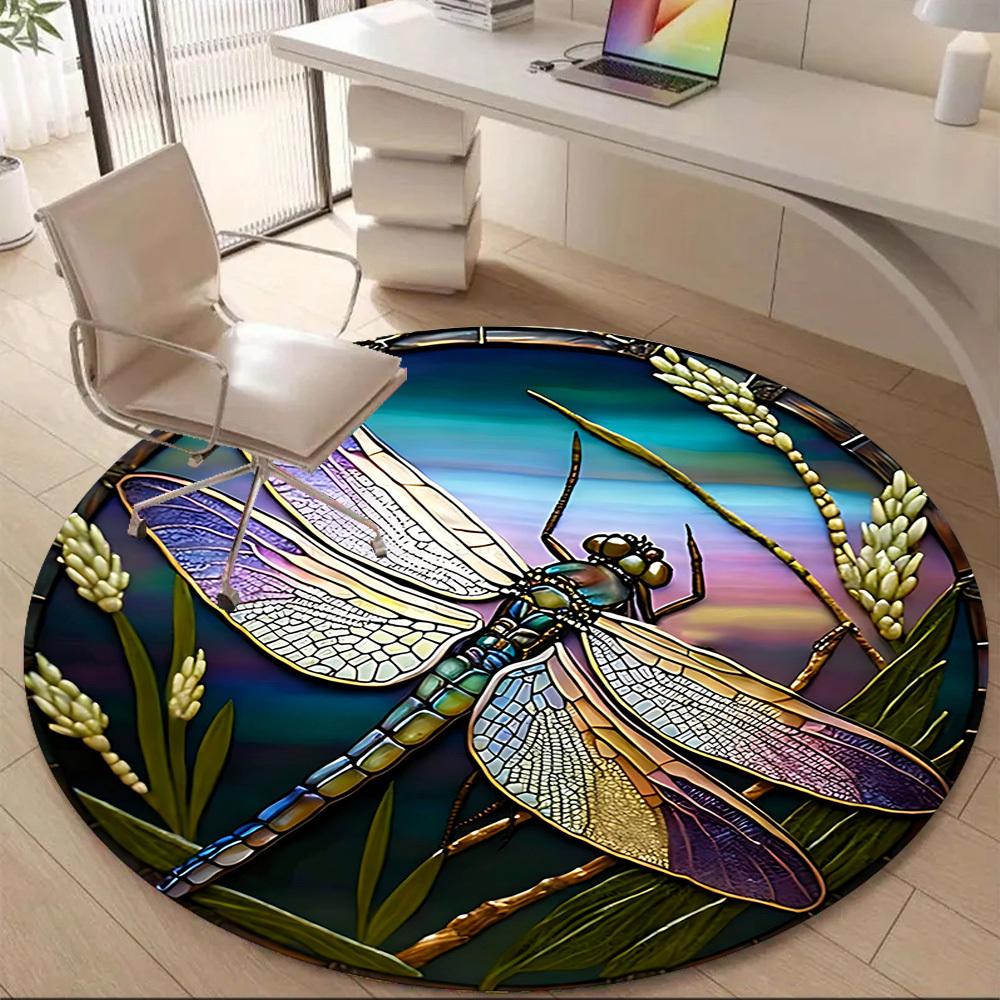 1PC Dragonfly StainedGlass Office Round Area Rug, Mat Suitable ForOffice, Under Office Chairs Bedroom Living Room Home Decor, Room Deco — купить товар онлайн с бесплатной доставкой по всему миру!