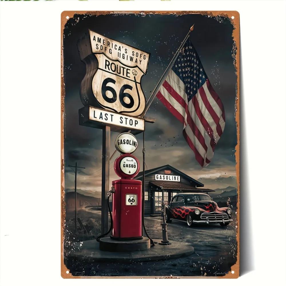 Metal Route 66 Sign American Wall Decor Vintage Retro Plaque US Flag Car Gasoline Iron Sheet Art 20x30cm Home Bar Man Cave