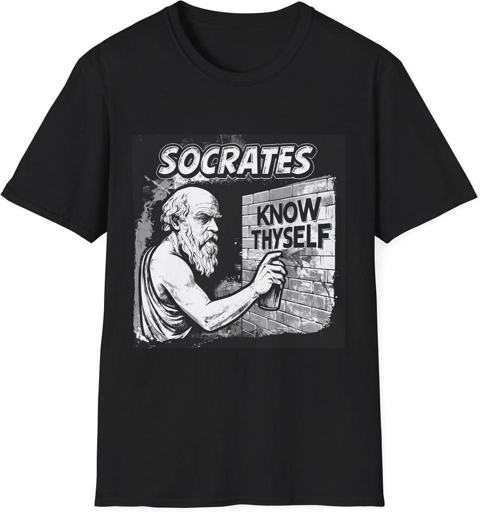 Socrates Know Thyself Graffiti T-Shirt – Ancient Greek Philosophy Street Art, Wisdom Urban Pop Culture Unisex Tee