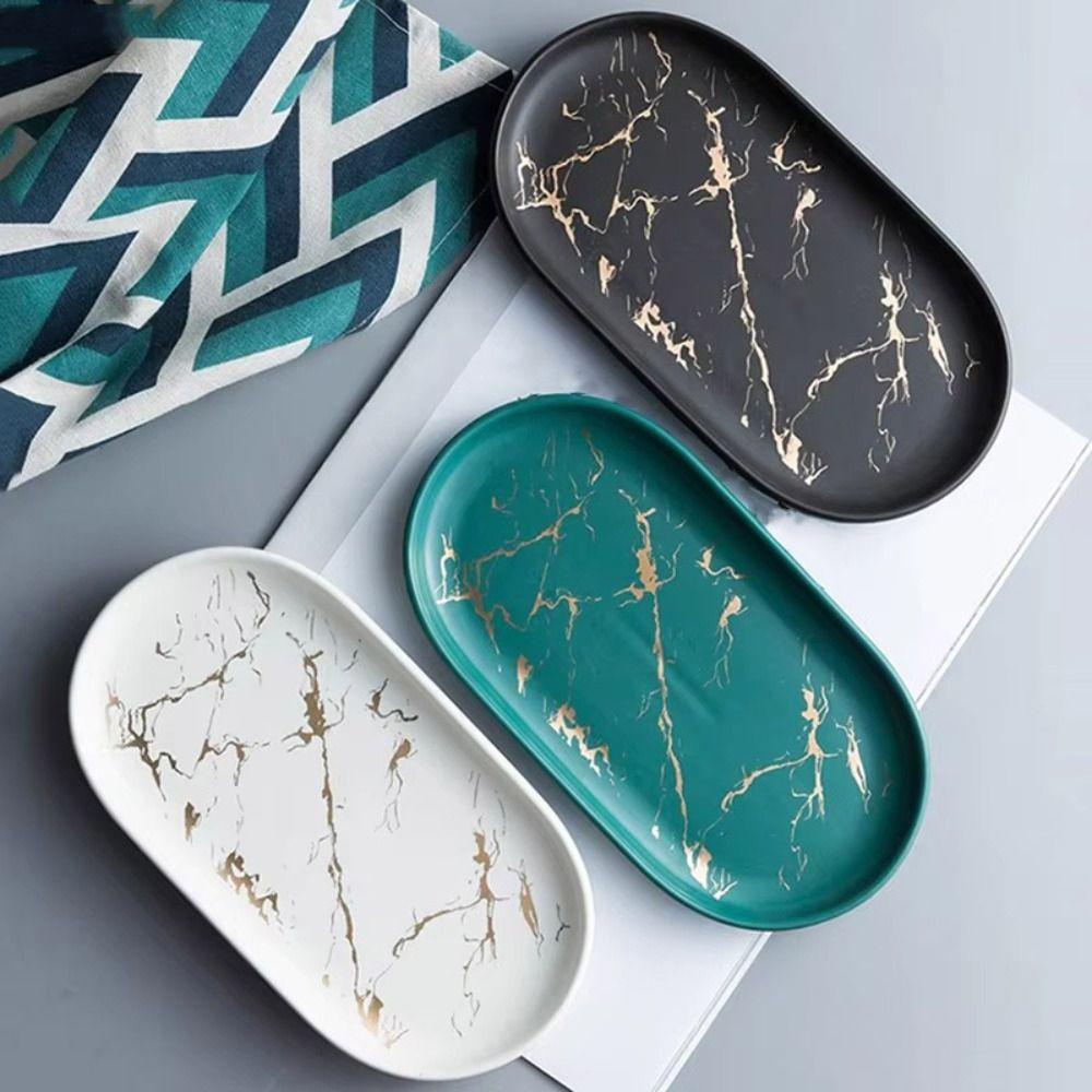 Мраморная текстура Нордический мраморный поднос Глазурованный золотой узор Фарфоровый материал Западное блюдо Роскошный дизайн Овальная форма Десертная тарелка