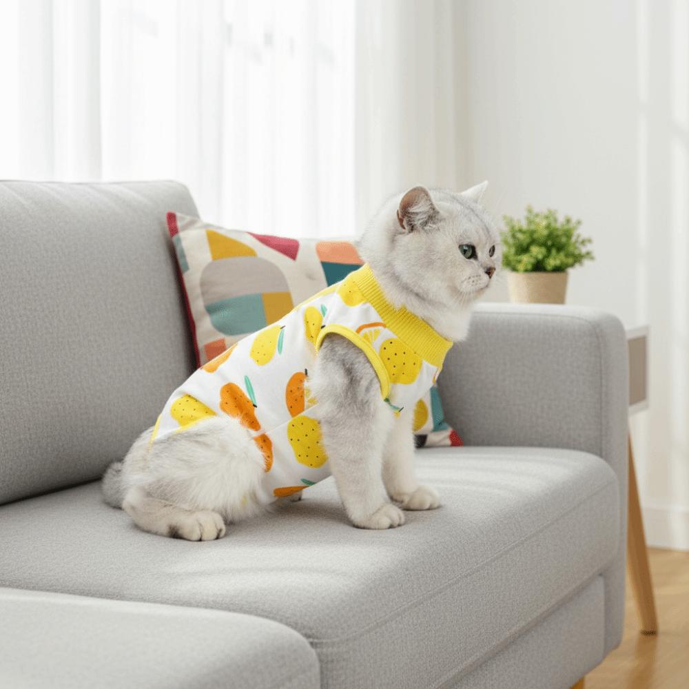 Fruit Printed Cat Recovery Clothing High Elasticity Breathable Cat Sterilization Suit Comfortable Soft Cat Jumpsuit Pet Care