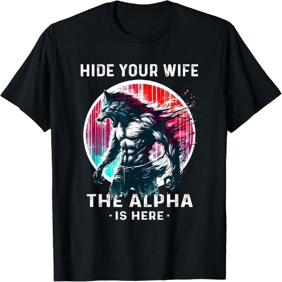 Hide Your Wife The Alpha Is Here T-Shirt Alpha Wolf Werewolf T-Shirt