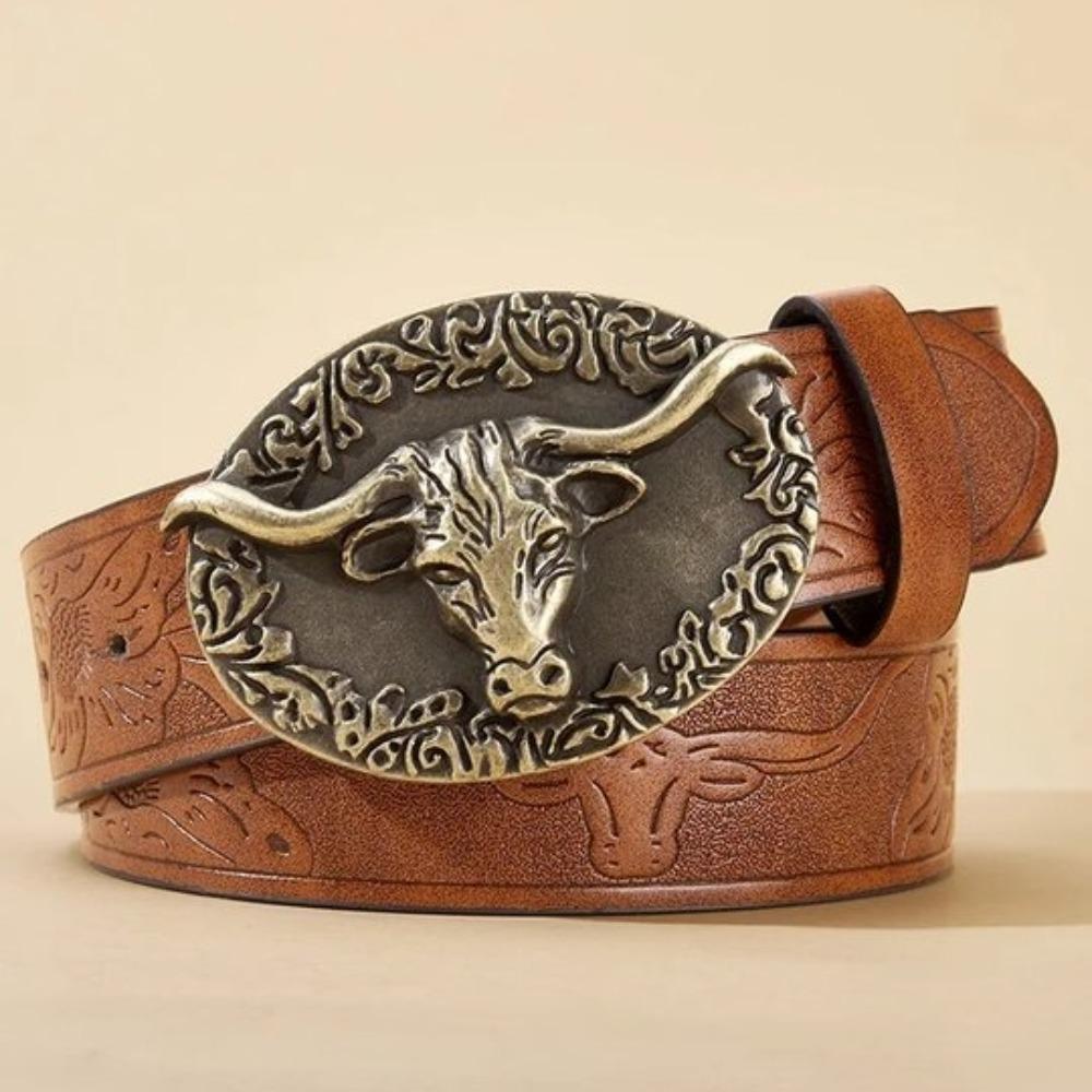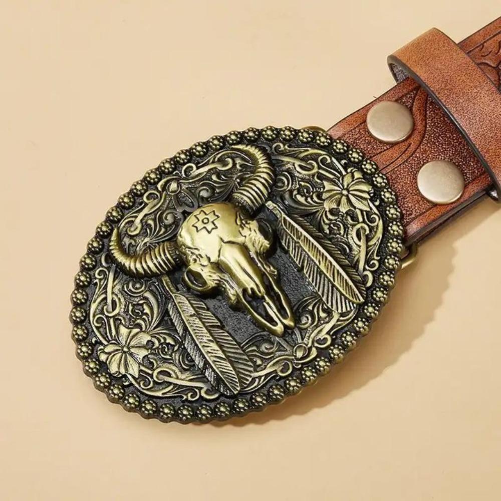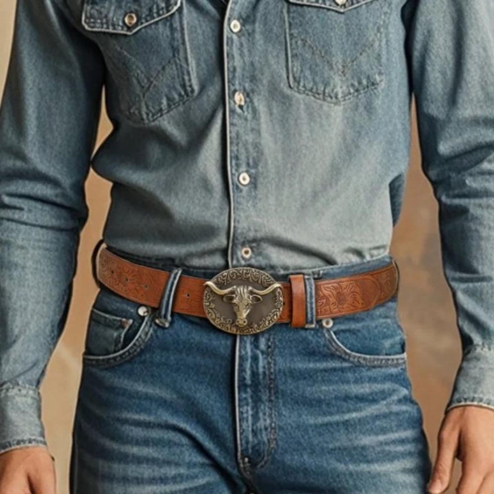 Цветочная гравировка пряжка ремня ковбойши винтажный ремень длиннорогого быка украшение на платье